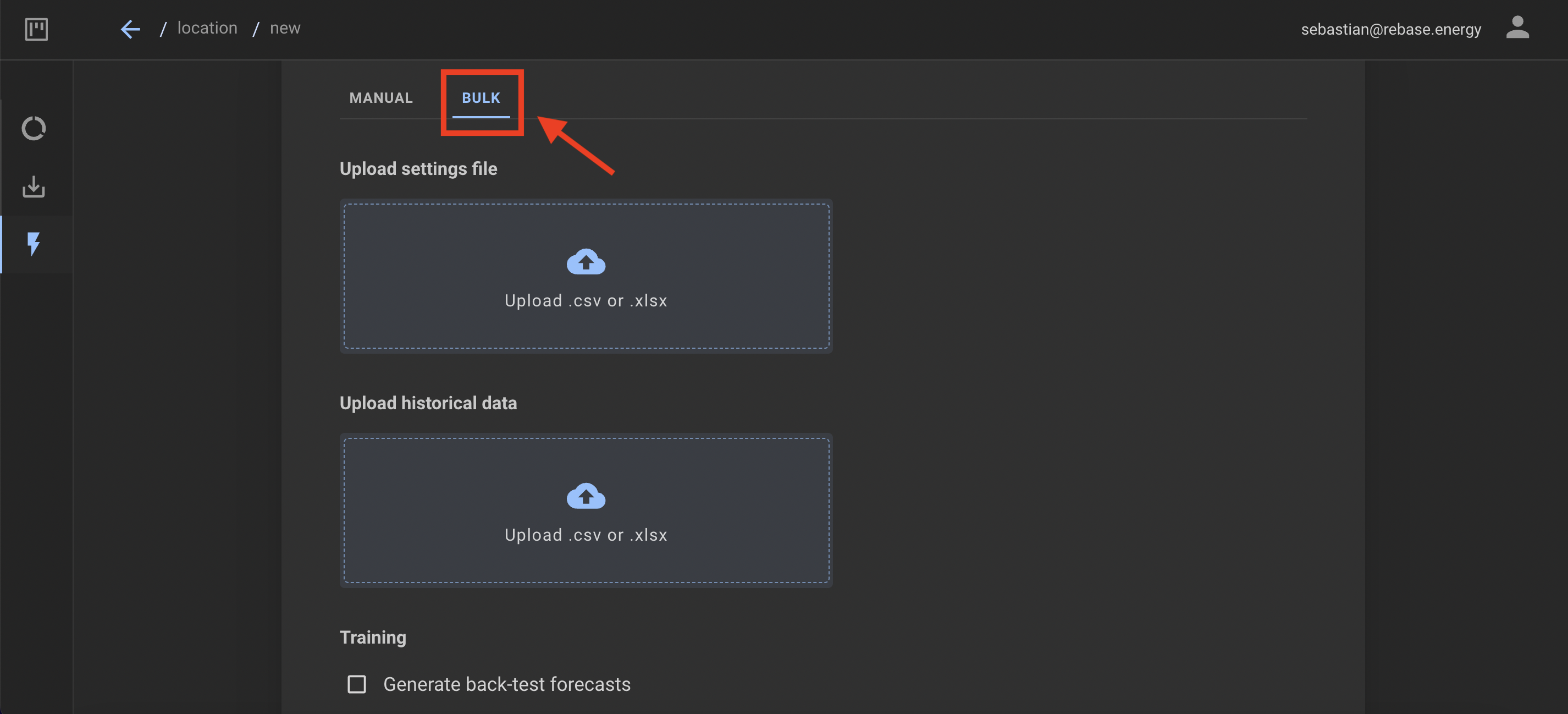 To create a site, start by clicking “Add location” in the top left corner of the screen.