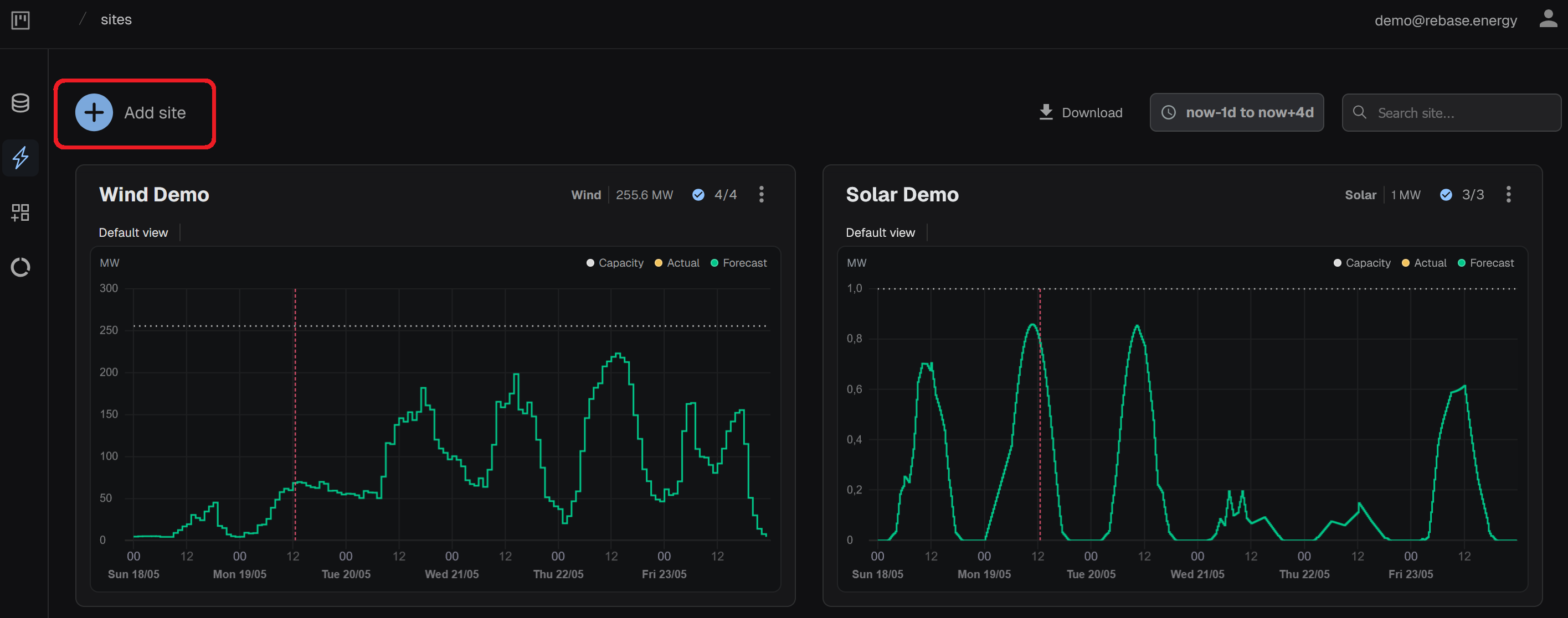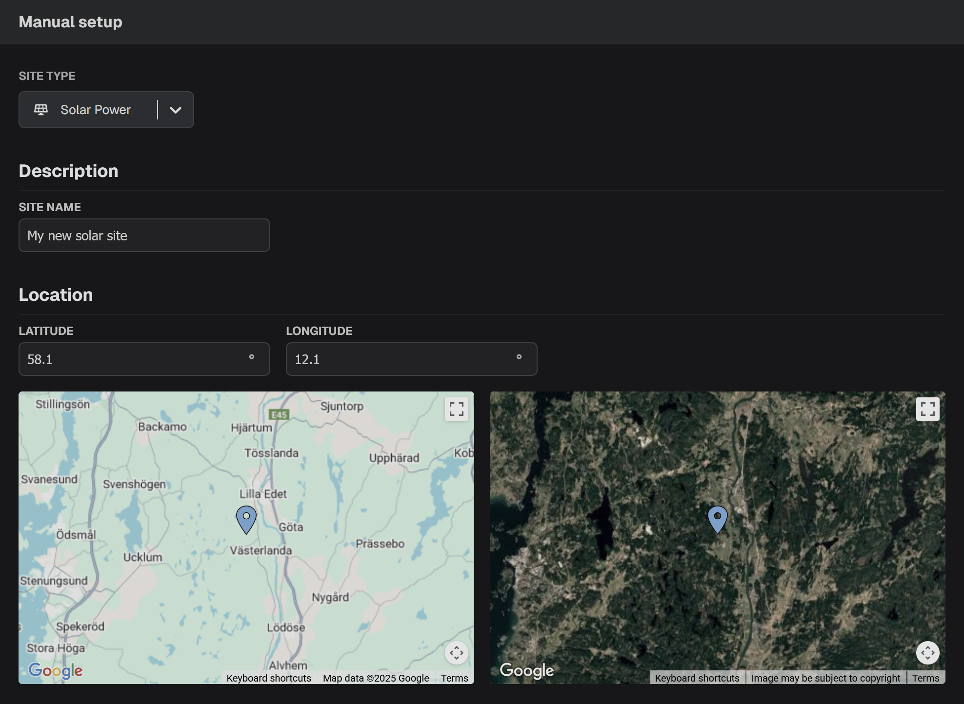 Depending on your choice of the site type, the configuration will be different. Choose the site type you want to configure in the tabs below.- Solar Power